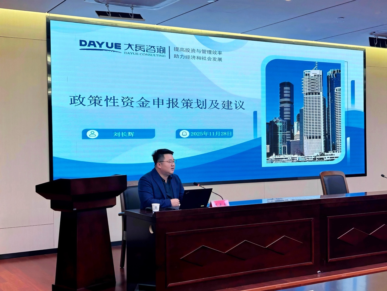 2025年11月28日,大岳咨詢高級經(jīng)理潘杰、劉長輝一行應(yīng)邀赴泰州市交通產(chǎn)業(yè)集團,開展政策性資金申報與城市更新專題培訓(xùn)。